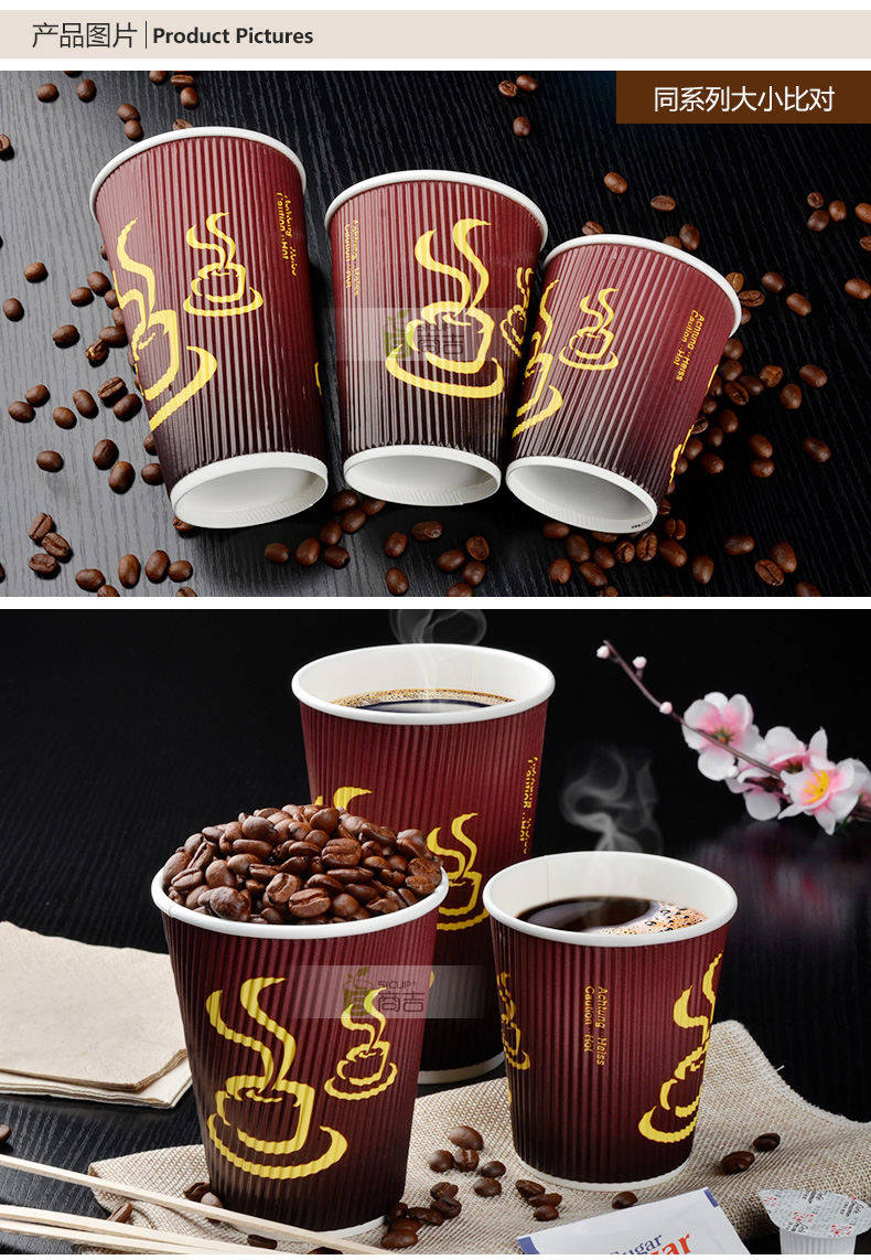 一次性防烫瓦楞纸杯 螺纹咖啡奶茶加厚纸杯1