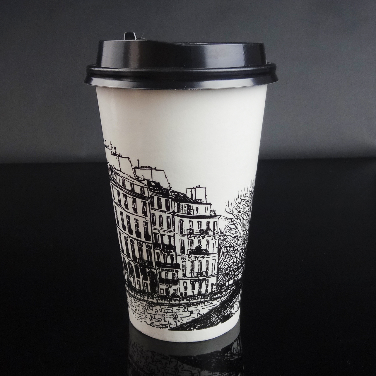 素描 16盎司500ML一次性咖啡杯/奶茶杯/饮料杯双淋膜